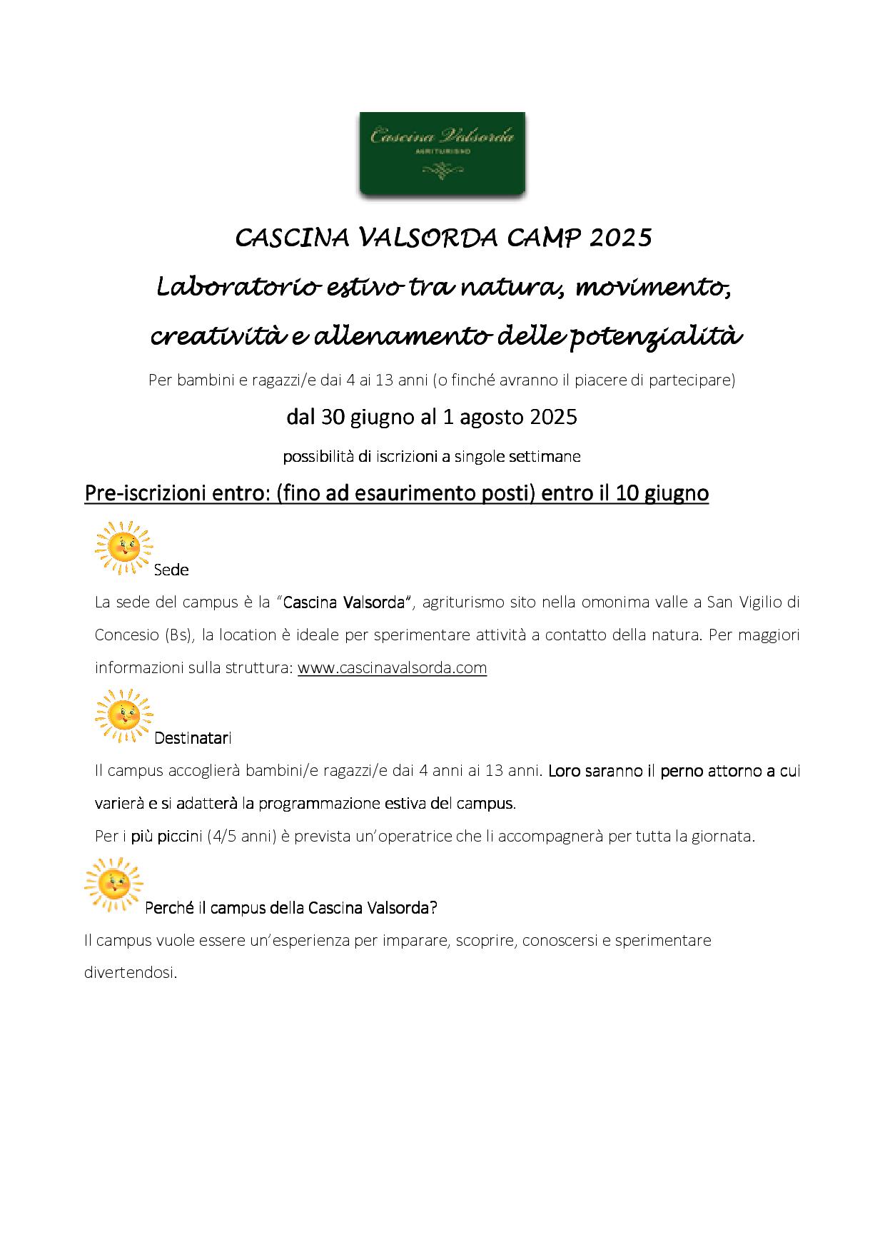 CASCINA VALSORDA TEEN: PER RAGAZZI DAI 12 AI 15 ANNI (VD LOCANDINA ALLEGATA)